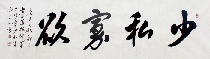 道德经第十九章《少私寡欲》:绝圣弃智,民利百倍;绝仁弃义,民复孝慈;绝巧弃利,盗贼无有。此三者以为文不足。故令有所属:见素抱朴,少私寡欲,绝学无忧。