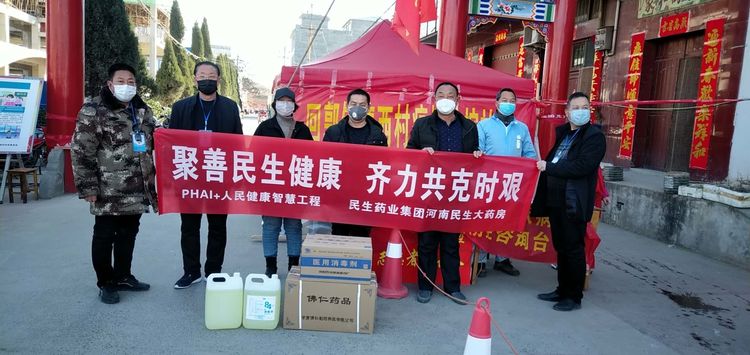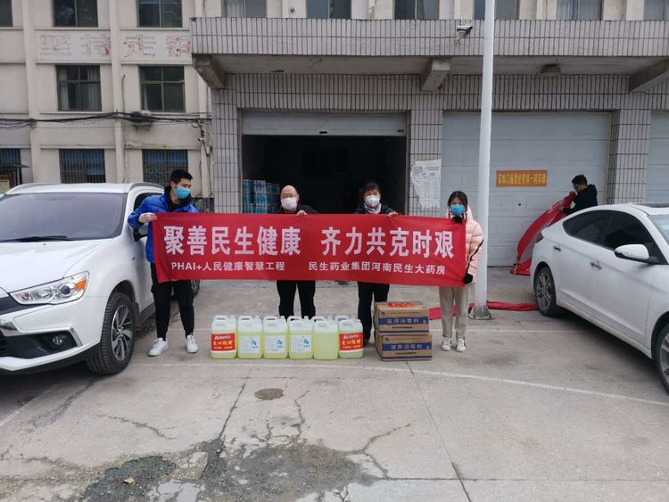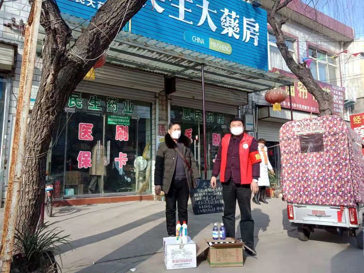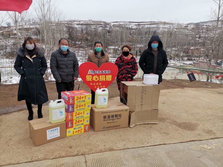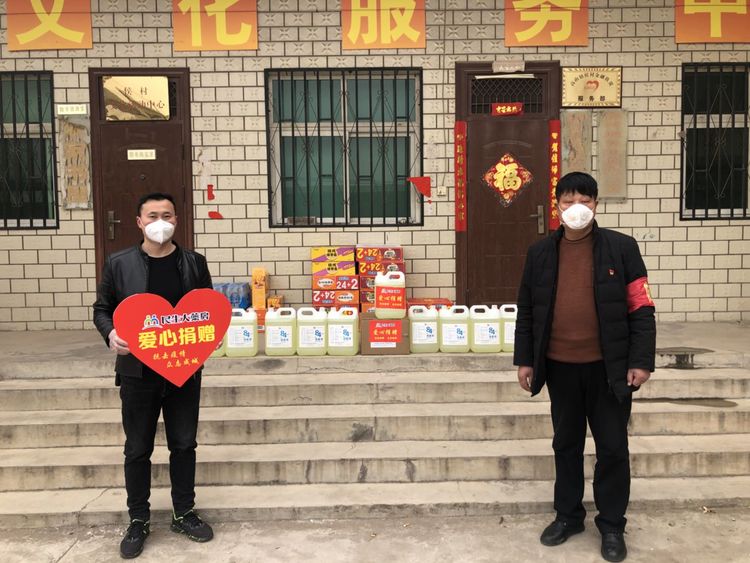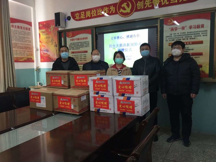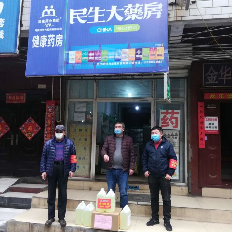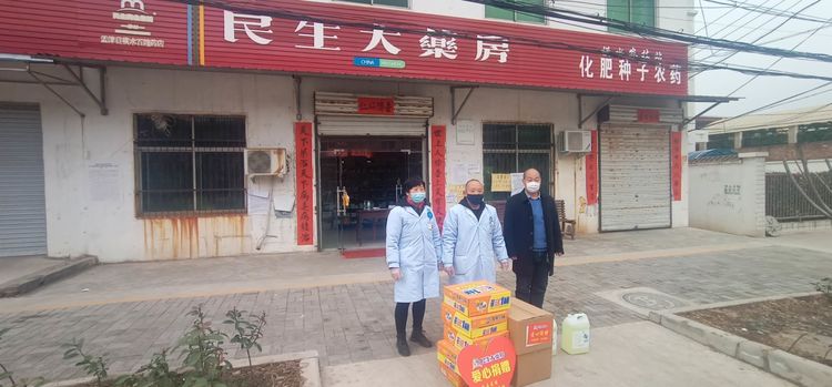 民生大药房嵩县众康店向旧县镇政府、旧县镇旧县村爱心捐赠应急防疫物资。