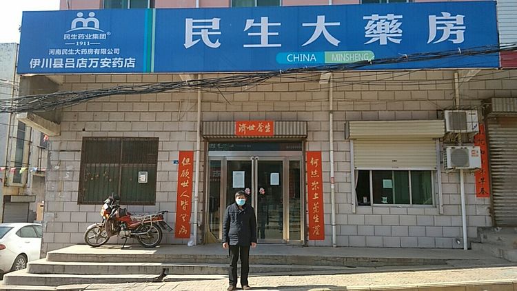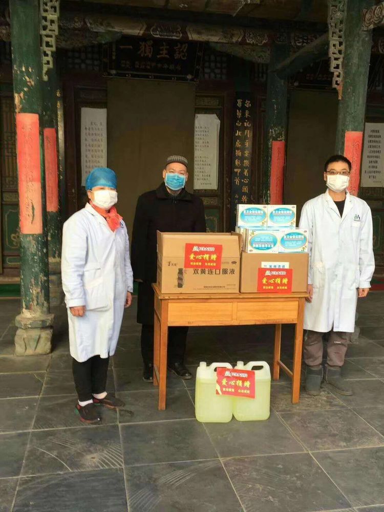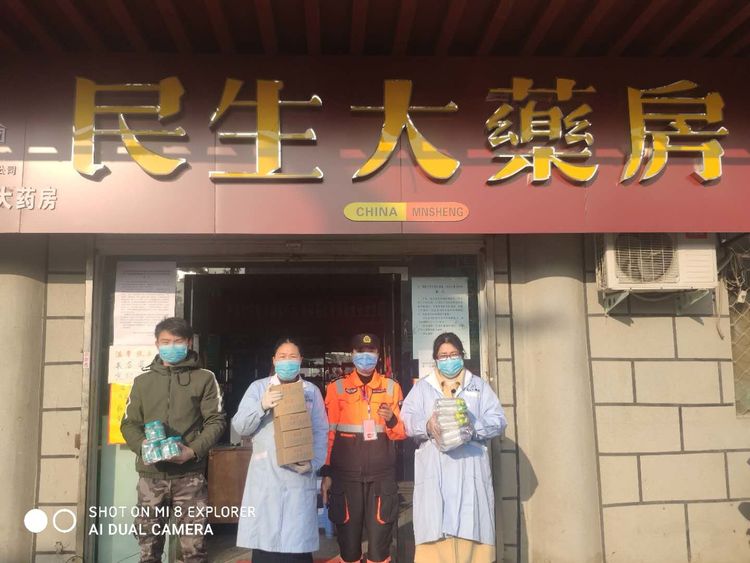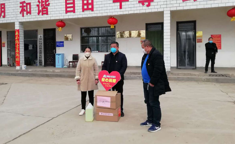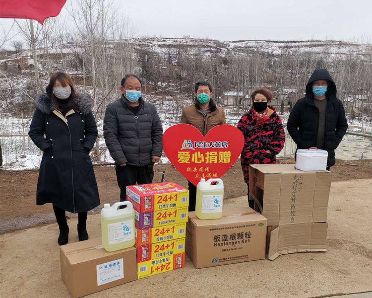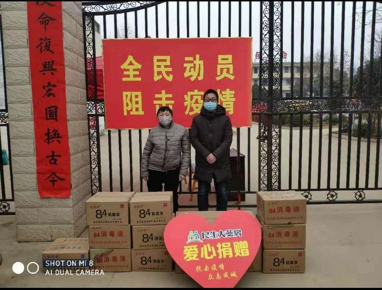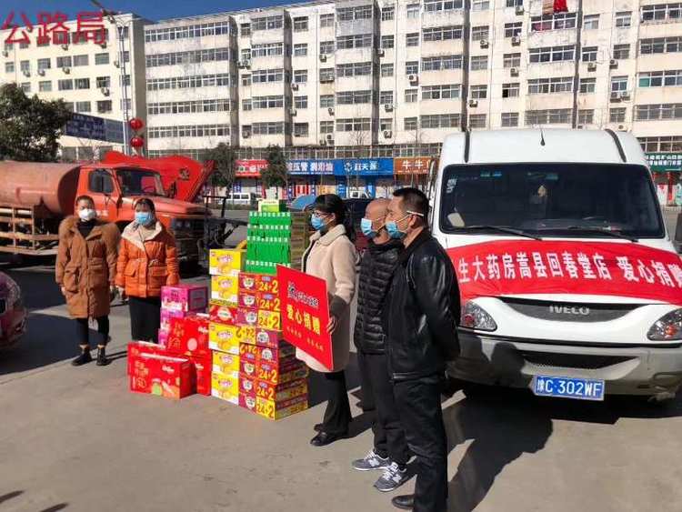 民生大药房嵩县众康店向旧县镇政府、旧县镇旧县村爱心捐赠应急防疫物资。