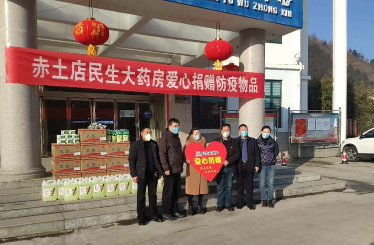 民生大药房惠民店向延秋村委会爱心捐赠应急防疫物资。