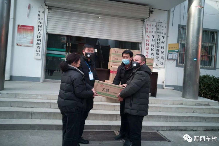 民生大药房嵩县中州新春店向车村镇政府爱心捐赠应急防疫物资。