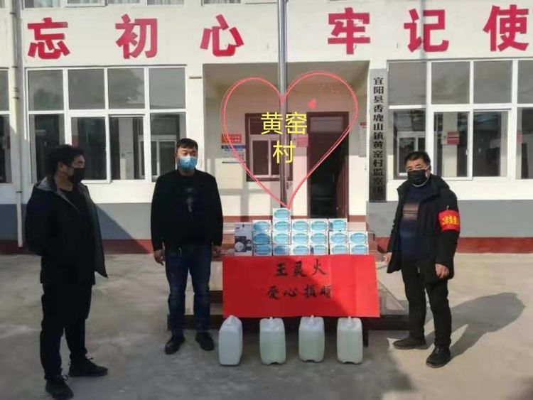 民生大药房汝阳县陶营保康店向洛阳市陶营镇铁炉营村委爱心捐赠应急防疫物资。