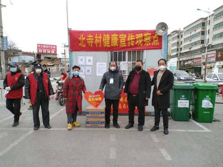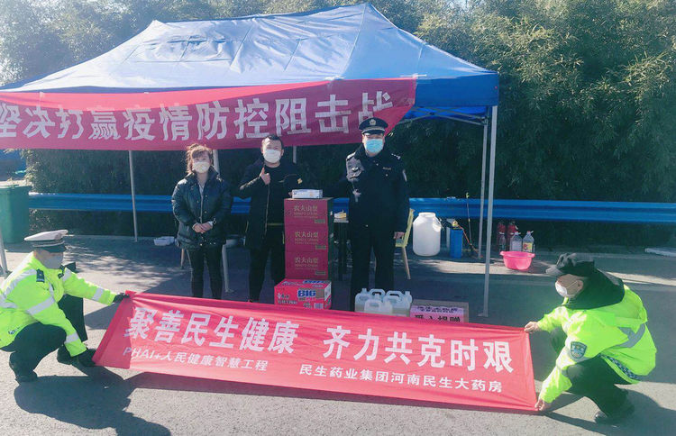 民生大药房巩义回郭镇店向马口村、北寺村、向阳村检查点、金桂花园小区、辖区监管所爱心捐赠应急防疫物资。