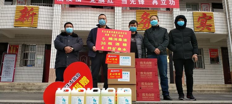 民生大药房嵩县田湖店向嵩县田湖镇田湖村、嵩县田湖镇下湾村、嵩县田湖镇第一初级中学爱心捐赠应急防疫物资。