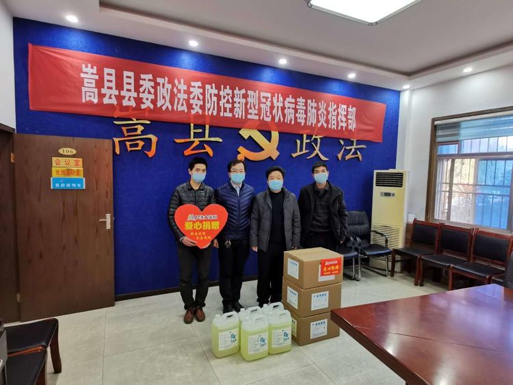 民生大药房嵩县益寿堂店向嵩县政法委、库区乡张岭村委、嵩县饭坡乡洛沟村委、嵩县黄庄乡石楼村委会爱心捐赠应急防疫物资。