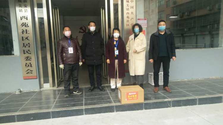 民生大药房新安县七里河畔店向新安县西苑社区服务站爱心捐赠应急防疫物资。