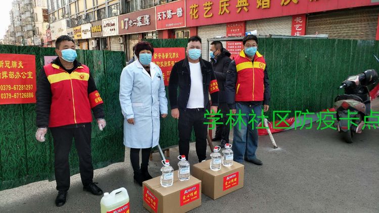 民生大药房孟津县新康店向白鹤鹤中村防控点爱心捐赠应急防疫物资。