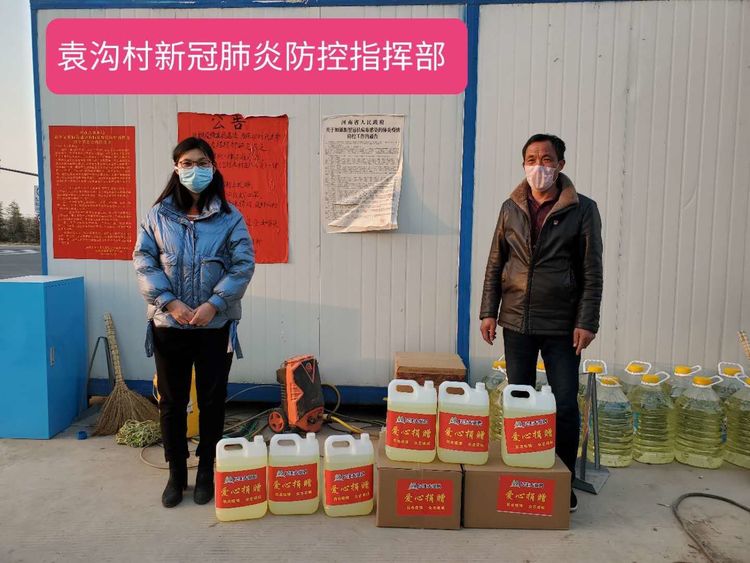 民生大药房荣杏堂店向袁沟村防疫指挥部爱心捐赠应急防疫物资。