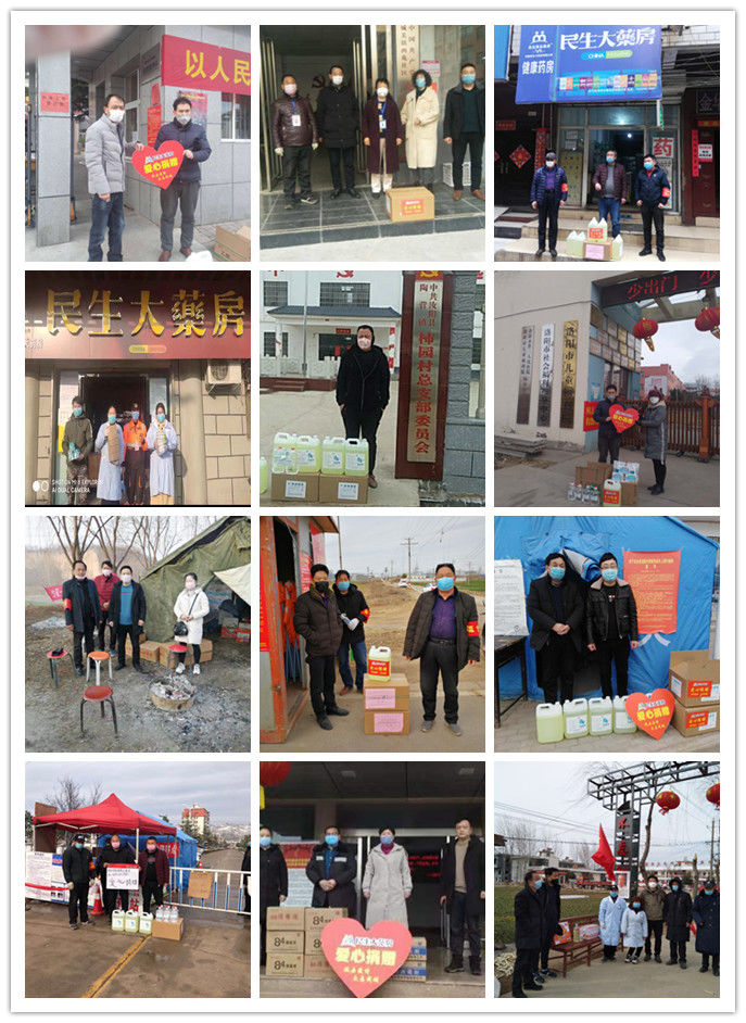 自疫情发生以来,在民生药业集团董事长刘万红、集团总裁徐海照的指导下,民生药业集团河南民生大药房有限公司总经理王忠敏带领公司旗下 242家门店陆续向全省一线防疫机构爱心捐赠防疫物资数批,累计提供医用酒精500余件(9吨)、84消毒液1433件(14.3吨)、金银花颗粒20件、板蓝根颗粒70件、部分医用口罩及双黄连口服液,全力支援各地打赢疫情防控战。