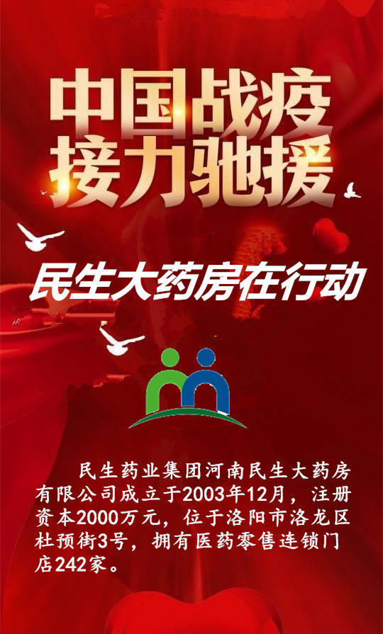 民生药业集团河南民生大药房有限公司马上响应国家号召,公司司总经理王忠敏高度重视,紧急组织调配,放弃节假日,全力以赴,发挥行业优势,调动一切内外资源,积极投身抗击疫情的战斗中。