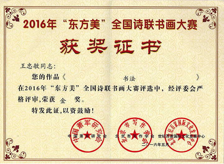 “盛世中华.我的中国梦”金奖