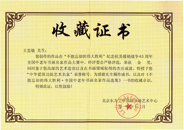 第三届“东方红 伟人颂”全国书画大赛金奖